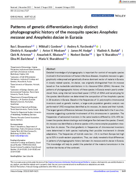 involved in the transmission of human infectious diseases. Anopheles messeae is a geographically widespread and genetically diverse dominant vector of malaria in Eurasia.