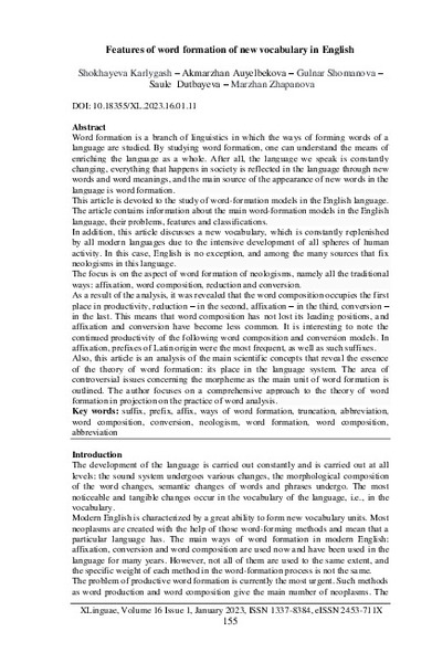 The article contains information about the main word-formation models in the English