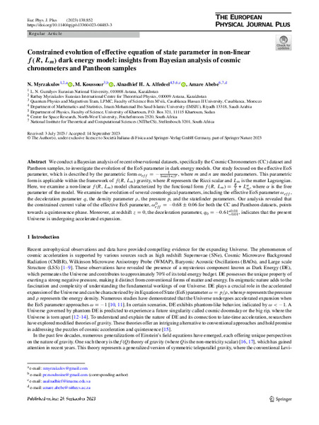 Here, we examine a non-linear f (R, Lm) model characterized by the functional form f (R, Lm) R