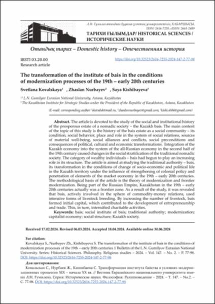 role in its structure. The article is aimed at studying the traditional authoritу – bais,