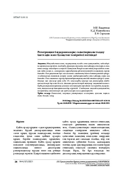 Репатриация бағдарламалары: салыстырмалы талдау (шетелдік және Қазақстан тәжірибесі негізінде)