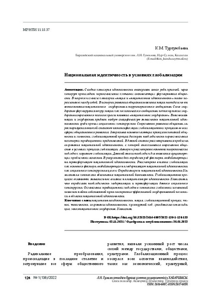 на трансформацию национальной идентичности. Рассмотрено влияние глобализации