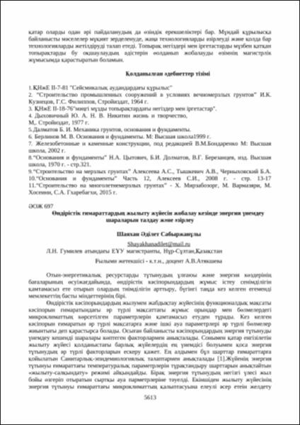ӨНДІРІСТІК ҒИМАРАТТАРДЫҢ ЖЫЛЫТУ ЖҮЙЕСІН ЖОБАЛАУ КЕЗІНДЕ ЭНЕРГИЯ ҮНЕМДЕУ ШАРАЛАРЫН ТАЛДАУ ЖӘНЕ ӘЗІРЛЕУ