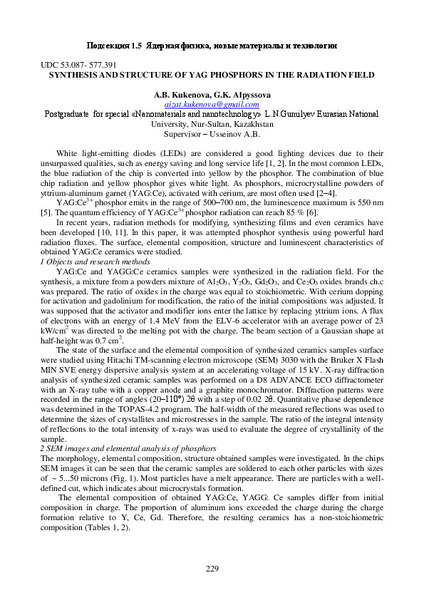 SYNTHESIS AND STRUCTURE OF YAG PHOSPHORS IN THE RADIATION FIELD