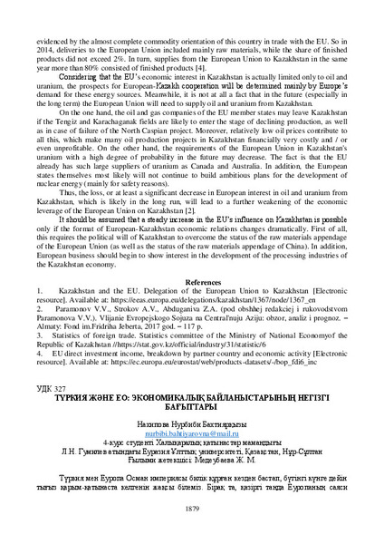 ТҮРКИЯ ЖӘНЕ ЕО: ЭКОНОМИКАЛЫҚ БАЙЛАНЫСТАРЫНЫҢ НЕГІЗГІ БАҒЫТТАРЫ