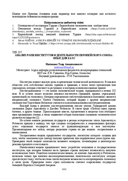 АНАЛИЗ РОЛИ ИНСТИТУТОВ В ДЕЯТЕЛЬНОСТИ ЕВРОПЕЙСКОГО СОЮЗА: ОПЫТ ДЛЯ ЕАЭС