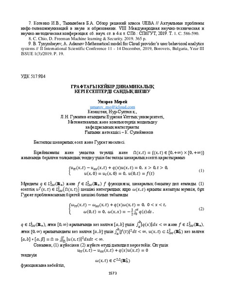ГРАФТАҒЫ КЕЙБІР ДИНАМИКАЛЫҚ КЕРІ ЕСЕПТЕРДІ САНДЫҚ ШЕШУ