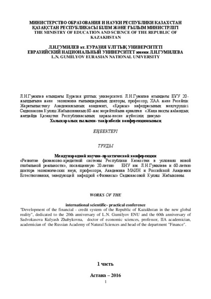 Жаңа нақты жаһандық жағдайда Қазақстан Республикасының қаржы-несие жүйесінің дамуы Б.1.
