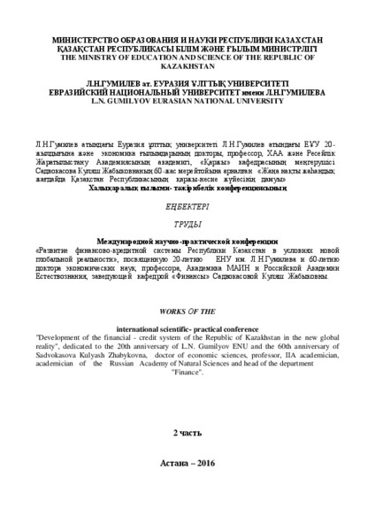 Жаңа нақты жаһандық жағдайда Қазақстан Республикасының қаржы-несие жүйесінің дамуы Б.2.1.