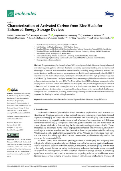 Characterization of Activated Carbon from Rice Husk for Enhanced Energy Storage Devices