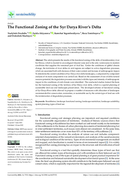 for the functional zoning of the territory of Syr Darya river delta, which is a spatial planning of