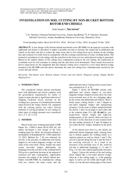 INVESTIGATION ON SOIL CUTTING BY NON-BUCKET BOTTOM ROTOR END CHISELS
