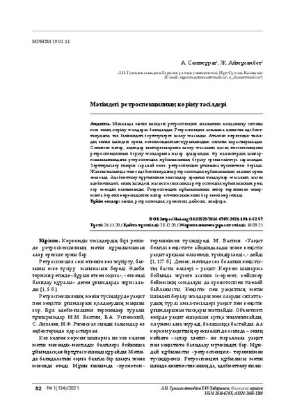 Зерттеушілер пікірін саралай келе, ретроспекция ұғымына түсініктеме берілді.
