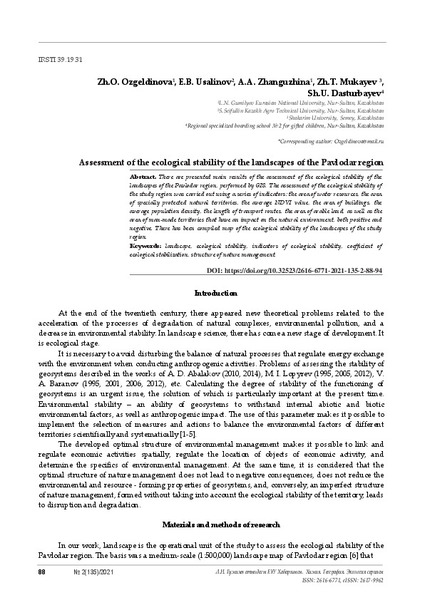 landscapes of the Pavlodar region, performed by GIS. The assessment of the ecological stability of